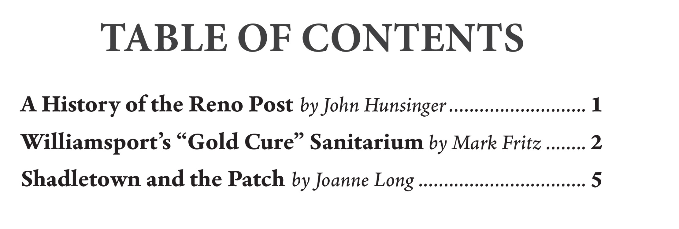 Publications Periodicals Pub Local History Journal of the LCHS - 2025-26 Winter $10.00 Journal of the Lycoming County Historical Society, Winter 2025-26 edition Quantity Add to Cart Out of Stock Product Details A History of the Reno Post by John Hunsinger; Williamsport’s “Gold Cure” Sanitarium by Mark Fritz; Shadletown and the Patch by Joanne Long.